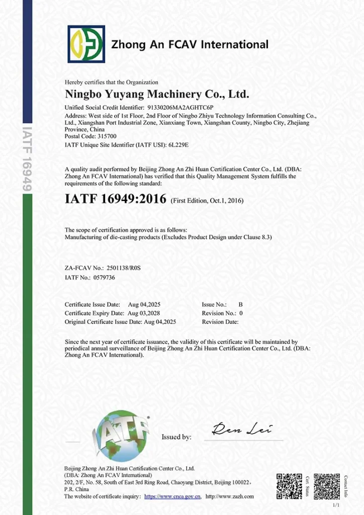 Благодаря надежным и безупречным характеристикам продукции и философии быстрого реагирования на запросы клиентов, компания «Юйян» продолжит углублять свою деятельность в сфере производства пресс-форм и алюминиевого литья под давлением, активно исследуя возможности для сотрудничества в новых отраслях по всему миру. Компания «Юйян» возьмет на себя инициативу по выводу бренда на глобальный рынок, оттачивая качество с помощью технологий и завоевывая репутацию качественным сервисом, стремясь стать надежным поставщиком для компаний из списка 500 крупнейших мировых компаний и отраслевых гигантов.